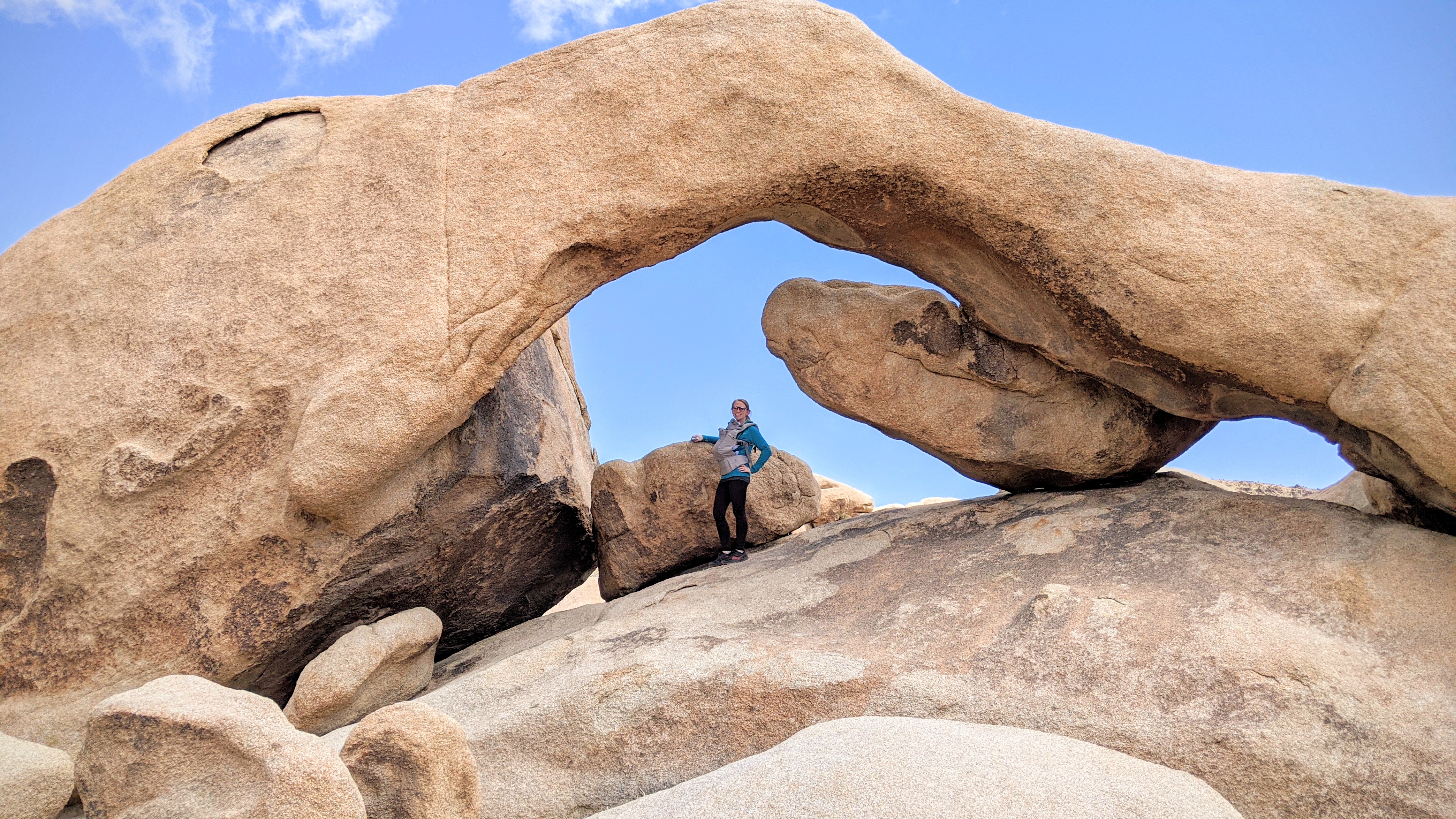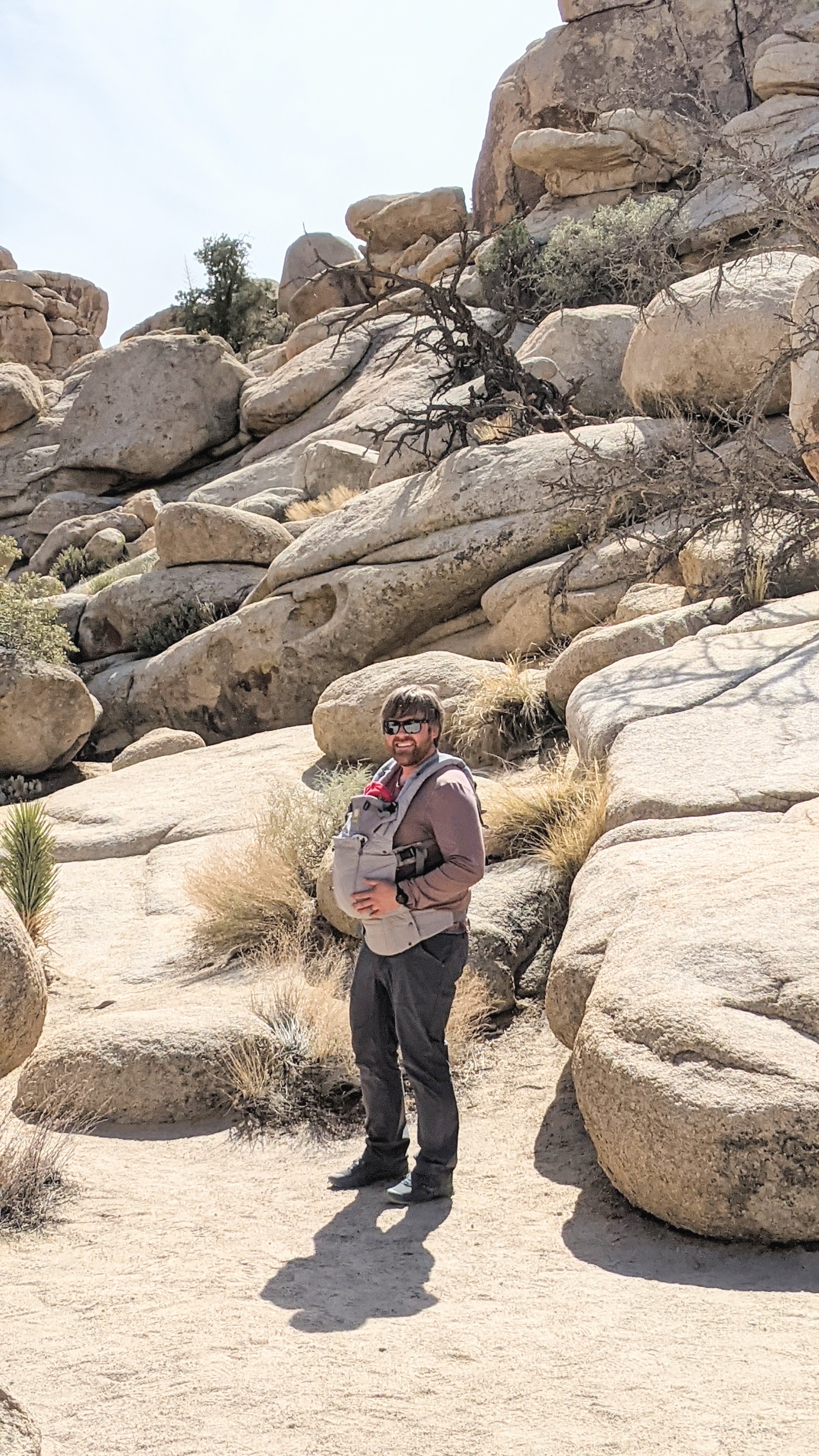 After this short period and until our son could maintain proper head support and met the minimum size requirements for our structured carrier, we front carried with our Lille Baby All Season soft sided carrier. We took it out on it’s inaugural trail in Joshua Tree National Park at 6 weeks where the kid spent most of his time sleeping. He always enjoyed the bounciness of driving on dirt roads, both in the womb and out, so the trail seemed to already be a bit soothing for him.