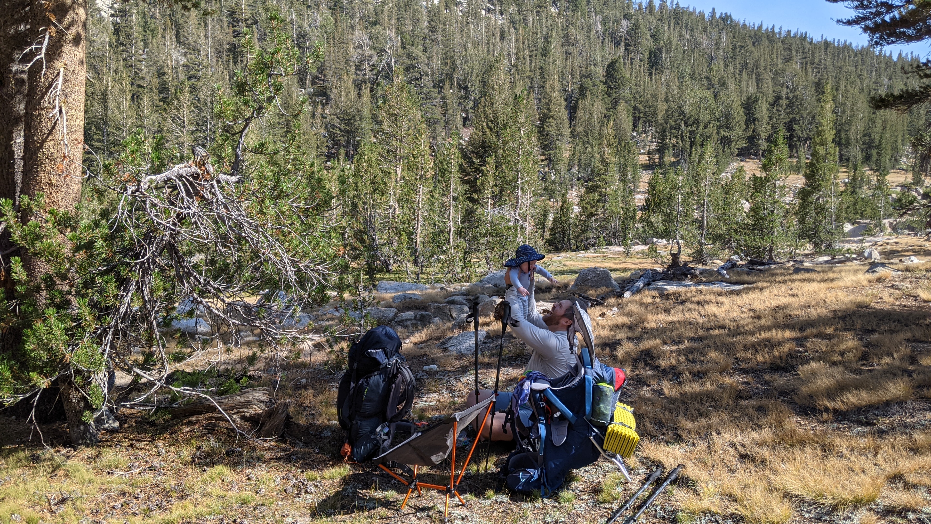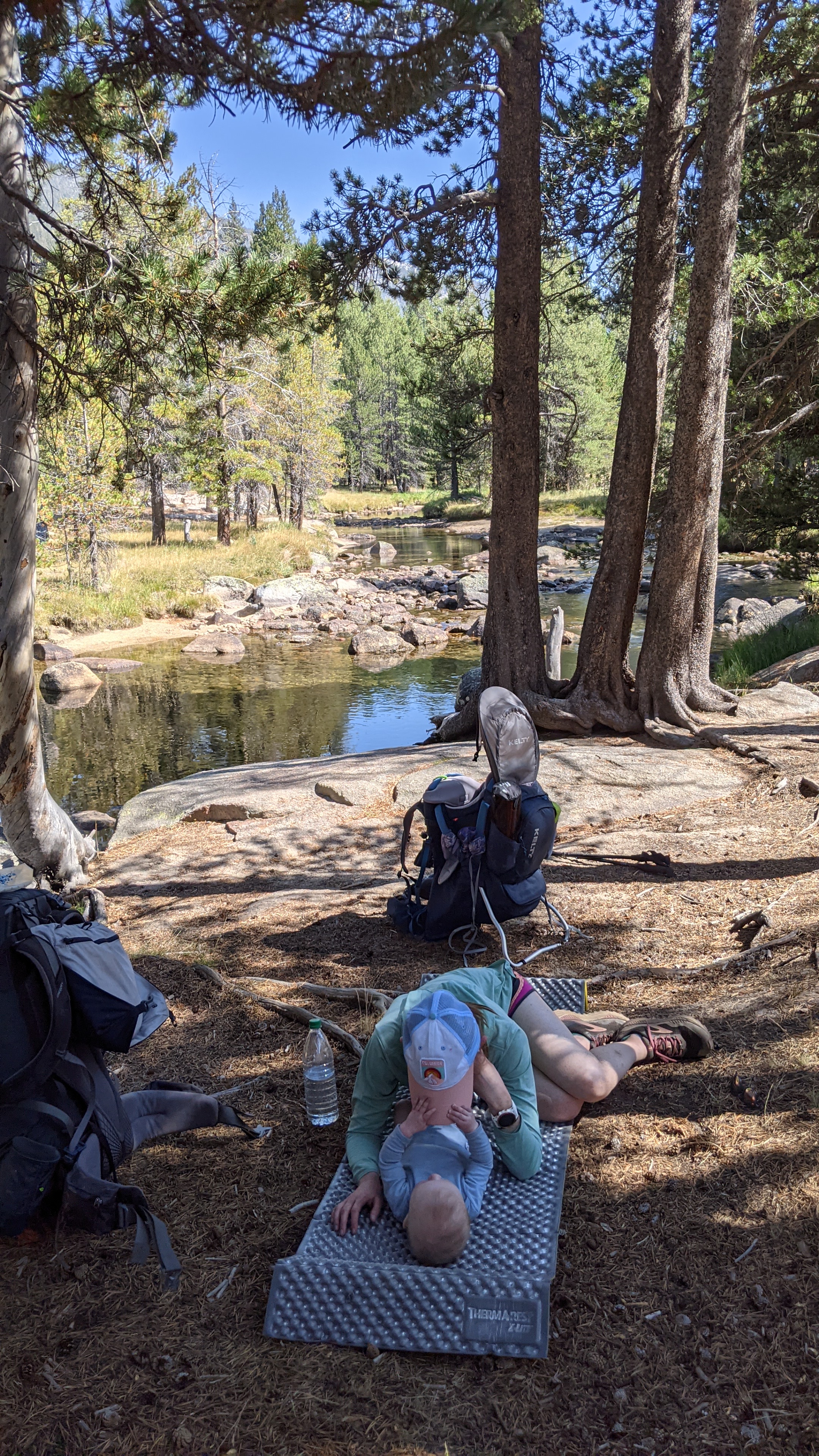 Find something to do with your child that they wouldn’t do in the backpack. Walk him around to find cool rocks. Go meet other hikers. Splash in the creek. While your child is in the carrier, they are largely idle…they should not be while on your break.