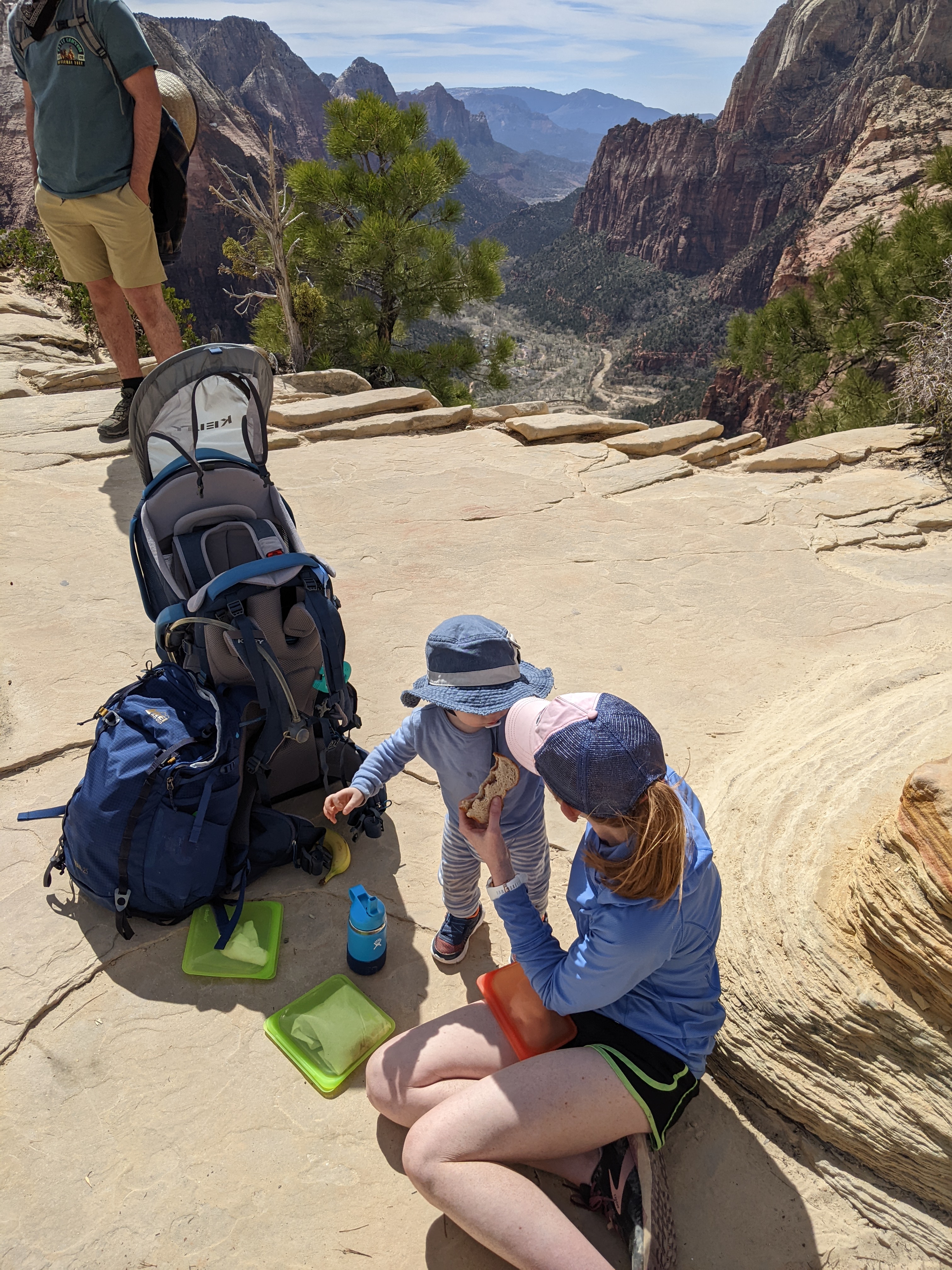 Besides these essentials, we bring the trail to our son while he’s in the carrier. We find cool rocks, pine cones, sticks, etc. and he loves it! Instead of being a bystander to the hike, he has become an active participant in it. He points to objects he wants to inspect and we oblige when we can.